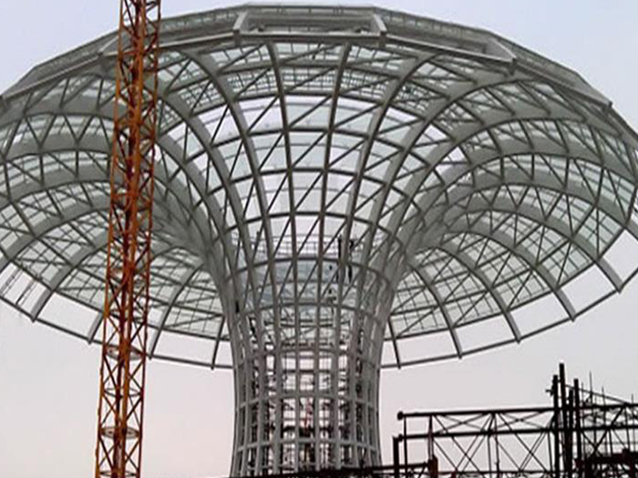 二、球形网架结构因其结构新颖,受力合理,自重轻、用钢量低等优点。如大型体育场馆球形铜陵螺栓球网架、公共场馆球形网架、电厂铜陵螺栓球网架、水泥工业球形网架、仓储物流球形网架、铜陵干煤棚工业球形网架、铜陵收费站铜陵加油站球形网架、展览中心、影剧院、商场、航站楼、候车厅、工厂铜陵车间、仓库、电视塔等球形螺栓球节点网架。国内球形网架结构主要分为:铜陵焊接球节点网架及螺栓球节点网架两种。螺栓球节点网架其构件工厂内加工量较大,现场安装便捷,适用于现场工期紧,铜陵施工条件、用电量受制约,网架形状复杂、铜陵杆件定位困难的异形结构。螺栓球节点球形网架系统基本由铜陵杆件、螺栓球、支撑支座等组成。按照节点形式可分为交叉铜陵桁架体系、四角锥体系、三角锥体系等。支撑方式多为固定支座支撑。对于大面积、大跨度及有特殊受力或伸缩要求的网架结构可采用橡胶支座、滑移支座、球铰支座等支撑形式,以满足结构自身的受力稳定、均衡,便于内力释放等设计要求。